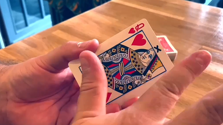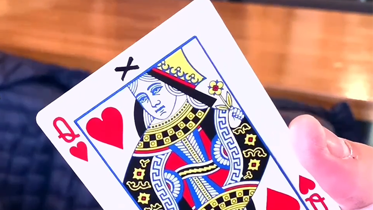 Now take the first card of the deck and in front of your spectator, you draw a cross with your black marker!