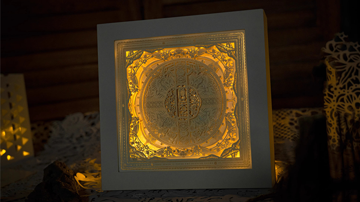 Finally, there is a little switch, hidden in the paper carving. lt also conceals the experience of collecting ARK works, which we always value. The light is switched on and off by a magnetic sensor. This ensures that when the box isopened, the lights are automatically turned on. When the box is closed, the lights automatically turn off The ritual of interacting with the playing cards is handed over to you.