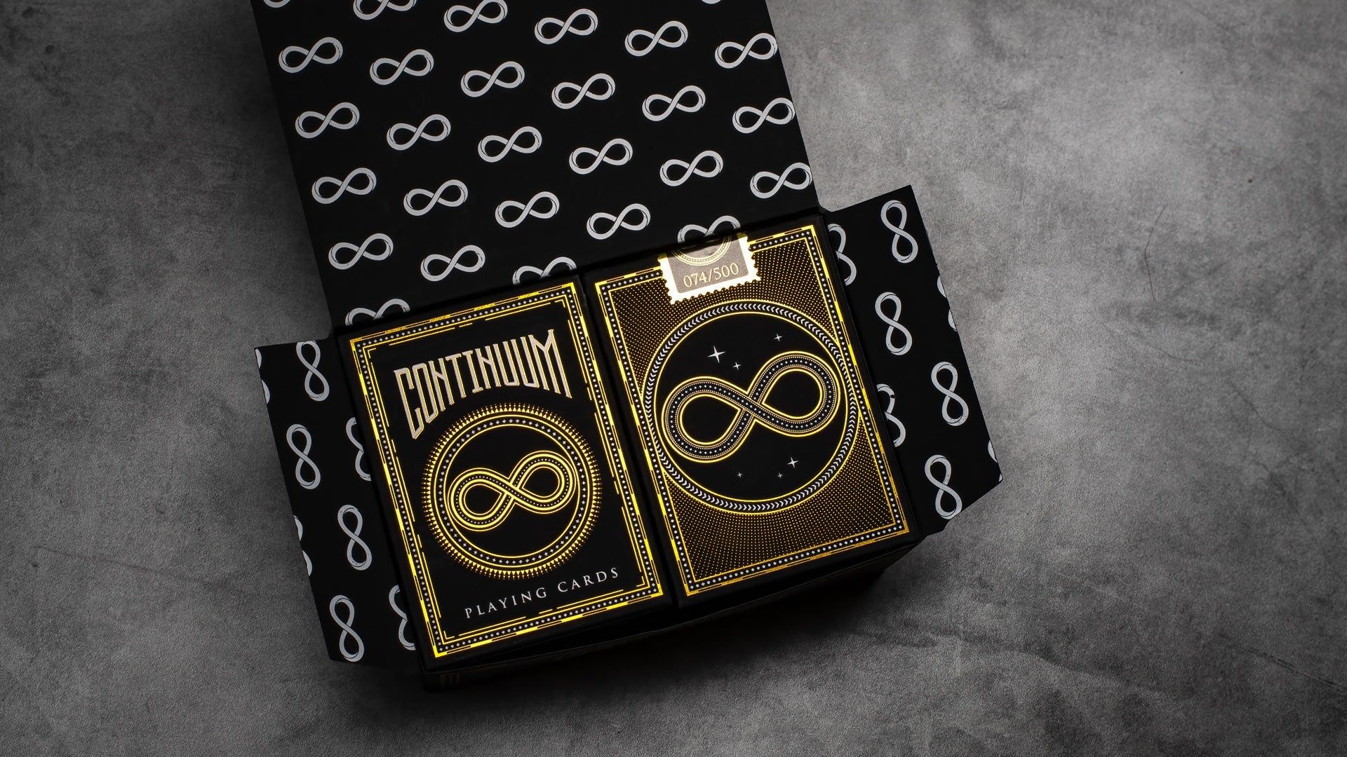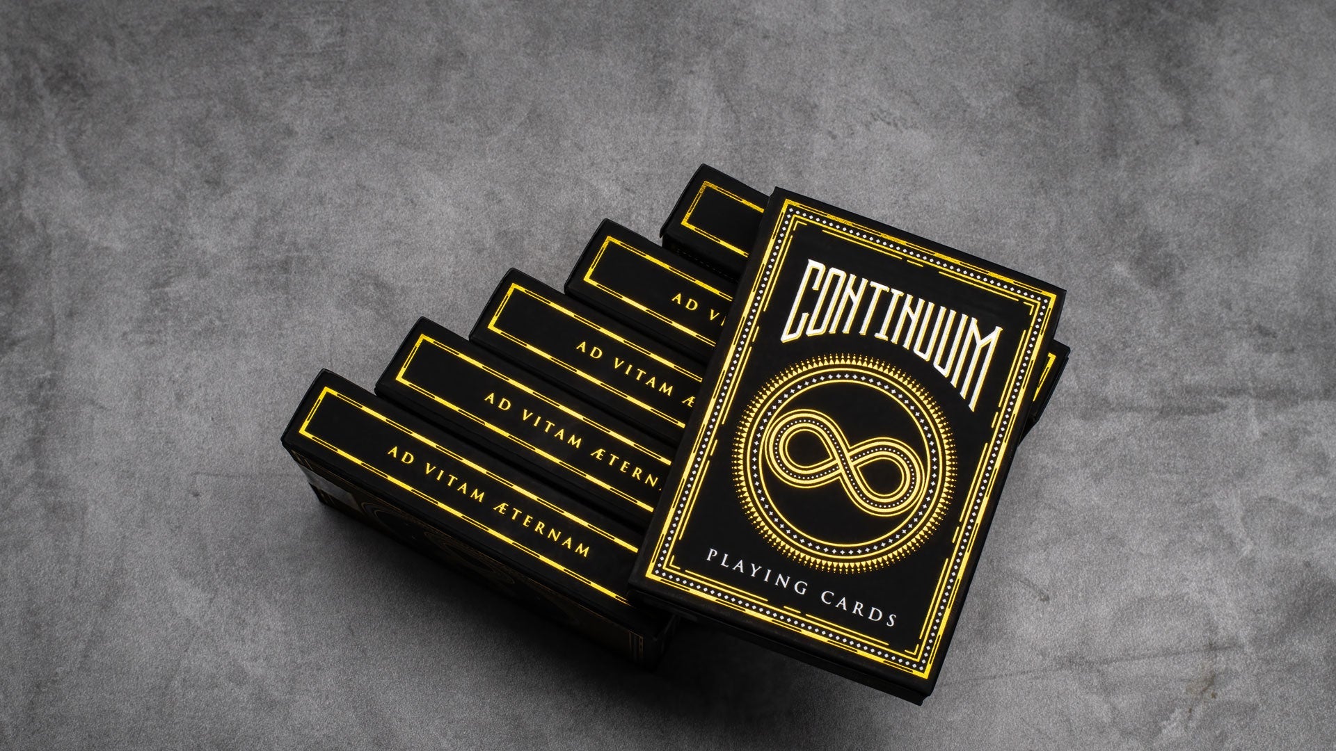 Continuum playing cards have a classic, yet modern appearance. Featuring 100% custom artwork, the card backs have a detailed geometric design with an infinity symbol in the middle - representing infinite possibilities.