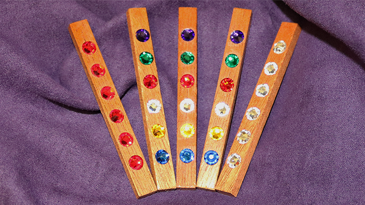 Effect: A beautiful wooden rod is shown to have various colored jewels embedded in it - 6 on each side. The spectator selects a jewel, and all 12 jewels become the same color as the selected jewel!!