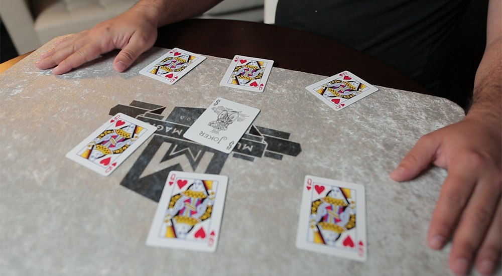 Juan Marcos brings you a packet routine in which the spectator must simply follow their selected card amongst a face down ring of seven cards. To make it simple, you turn their selected card face up to make it crazy-easy to follow. In a massive, unexpected twist, EVERY OTHER CARD has now turned to their selected card, and their original selection is now the only losing card in the game.