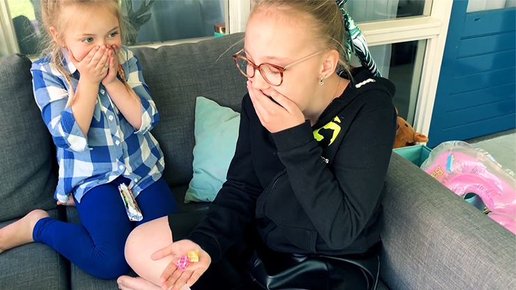 Have a spectator choose 2 different coloured candy's, and have them cup their hand around them. Next, you take one of the candy's out of their hand without them seeing it. It's a 50/50 chance that the spectator will "guess" the right color so that is not too magical...until you magically and visually make the candy disappear, only to have it re-appeared INSIDE their hands!