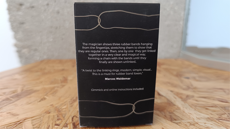 With LINKING BANDS, you will be able to create a visual routine always ready to perform in your close-up shows, social media or walk around magic. A beautiful parlor or musical rubber bands routine using just three rubber bands, the limit is your imagination. Very visual and commercial magic for both laymen and magicians. More than a static routine, it is a tool to use your own moves.