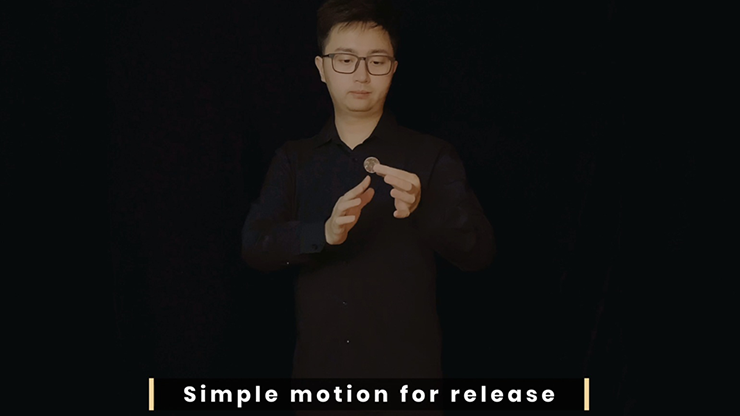 The magician displays an empty hand and with a swing of the arm, a coin is produced.