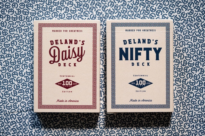 The DeLand Centennial project brings two amazing decks of marked playing cards back to life. Originally printed in 1919, the Daisy Deck and Nifty Deck were created by Theodore DeLand. In honor of their 100th anniversary, we have recreated these ingenious decks from the ground up.