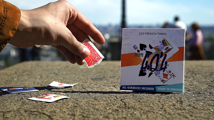 The French TWINS ARE BACK!!!! The French TWINS are known for creating powerful and innovative magic tricks! Visually transform, one by one, 4 torn pieces into the chosen card -- and then restore it in the spectator's hand! Have this superhero power in your pocket ready to perform ANYTIME and ANYWHERE.