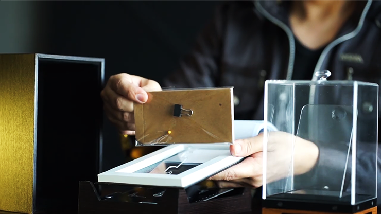 From the beginning an envelope sealed on the clear box and remain untouched until the end of the routine.