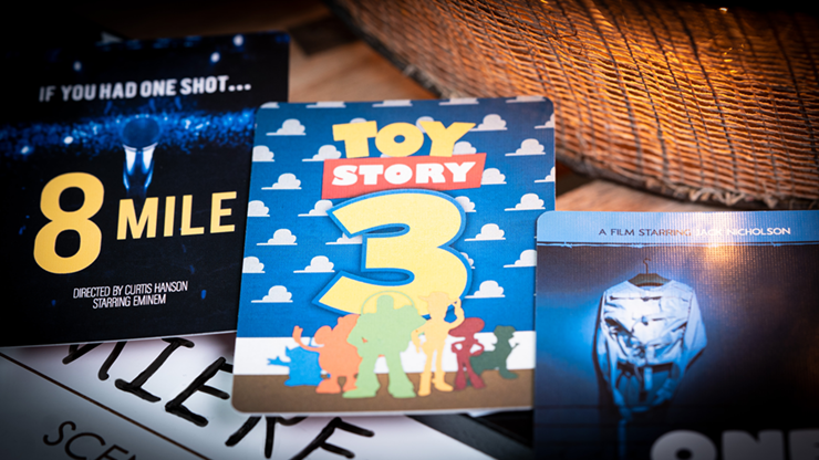The five envelopes are now laid out in a row and five tokens are introduced. These are placed on top of each envelope in any order they choose. The movie posters are then tipped out of the envelopes and the tokens are slowly turned over one at a time. Amazingly, on the back of every token is a different number that directly correlates to the film it was paired with - a perfect match!