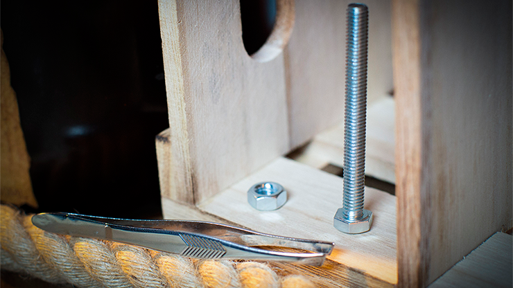 But Re-Volution takes this to a whole new level. The magician can choose to not even touch the nut and bolt -- he simply takes his pair of tweezers and picks it up to show it's completely hands free.