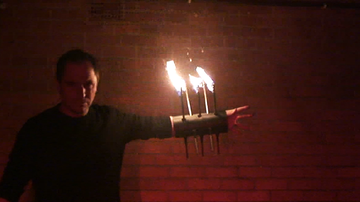 A tube is shown and pushed over your arm. 5 lit torches are now thrusted through the tube and your arm. You can wiggle your fingers to prove it's your real hand. You now pull the torches out and remove your arm to show its unharmed.