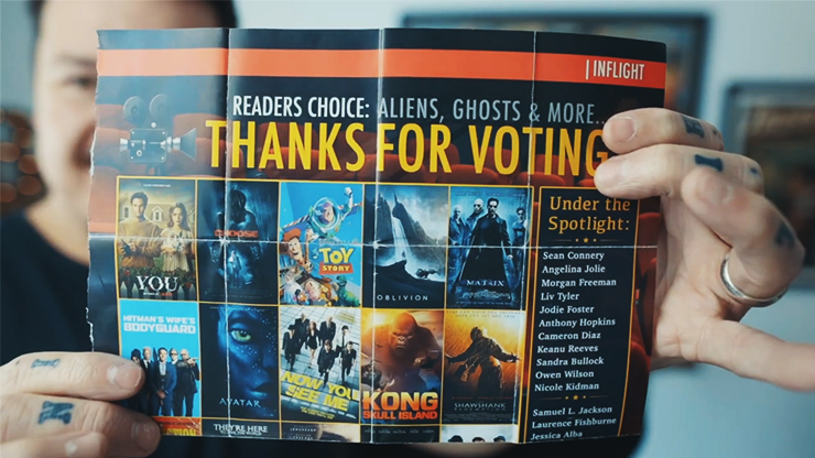 The participant begins by merely thinking of any of the 25 famous movies that are printed upon the magazine page. They are further asked to think of any celebrity who has appeared in their chosen movie from a list of 30 different possibilities. The mentalist is then able to reveal the person whom they are thinking of in a laser direct fashion.