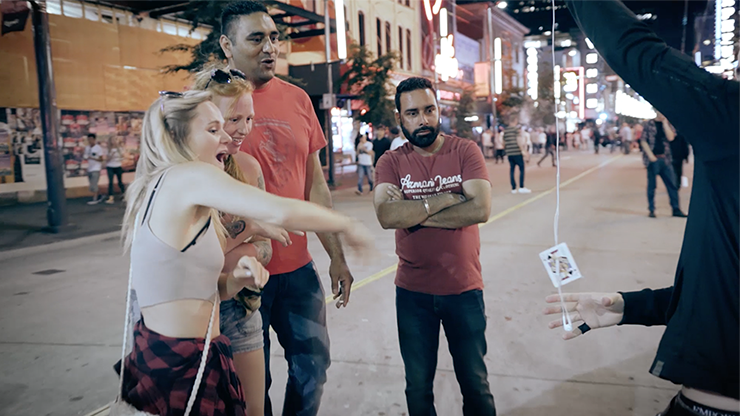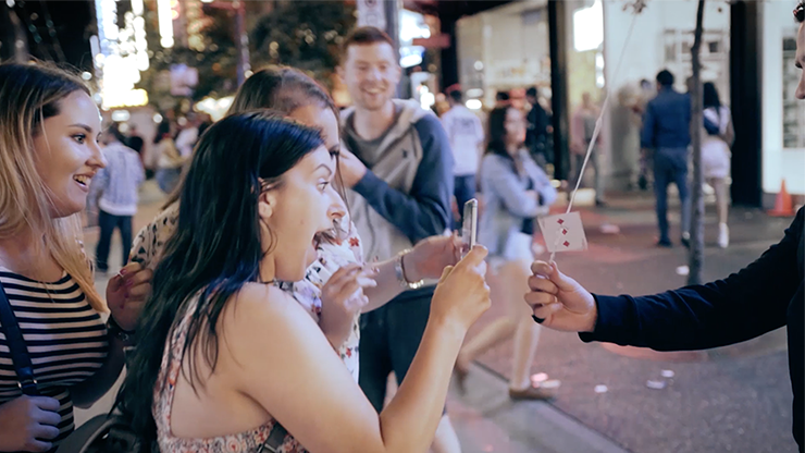 Sonic Stab is a versatile card prediction routine with style! With a pair of standard headphones around your neck, you will pick out your spectator's chosen card every single time. Just toss the deck of cards into the air, crack the headphones like a whip, and watch your audience's reaction when you stab their chosen card with your headphones!