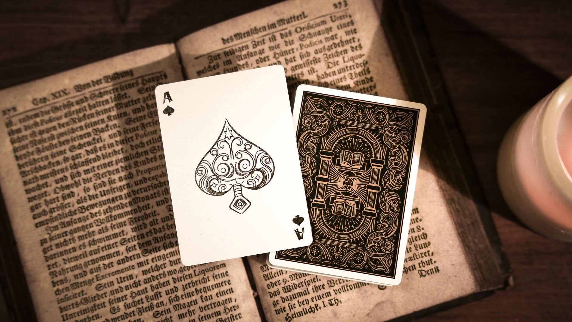 Sorcerer's Apprentice playing cards feature Penguin's exclusive UltraLux™ Finish and AquaFlow™ Coating. The casino-grade European card stock has a perfect linen texture that handles like an absolute dream. The cards are traditionally cut with smooth edges that provide just the right amount of grip.