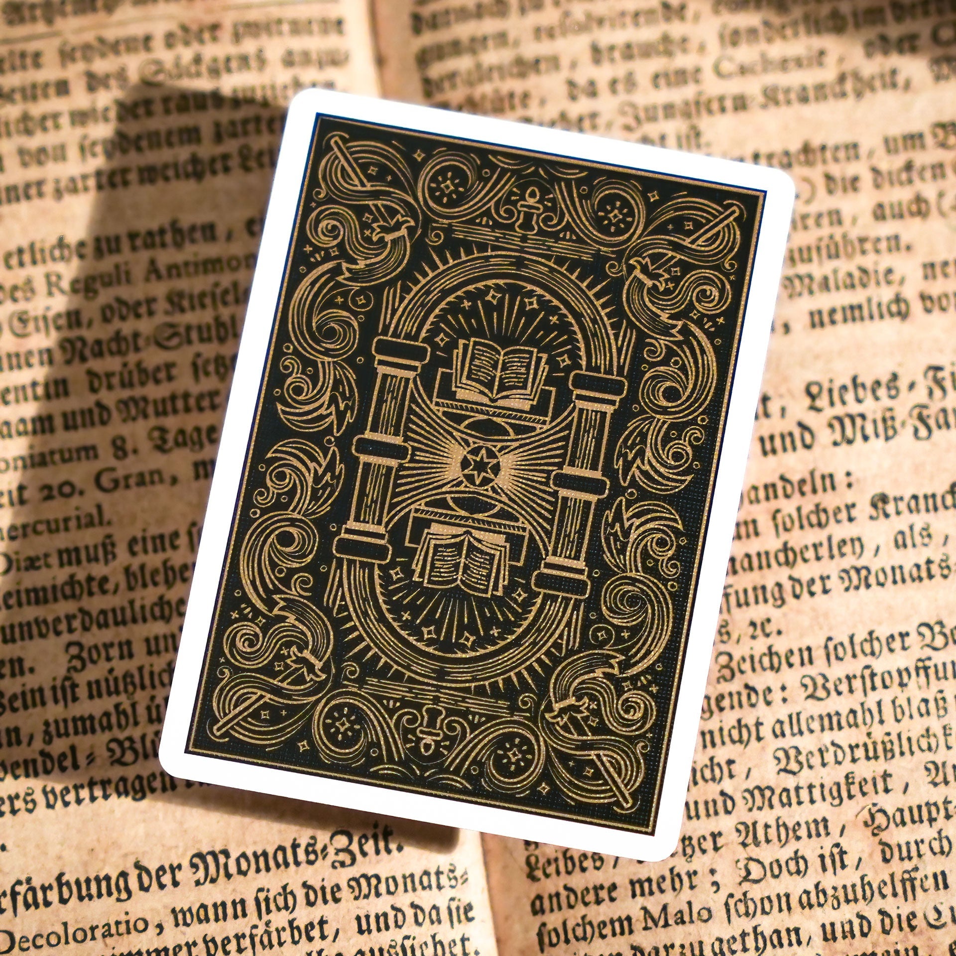 The blue & white back design features the Sorcerer's spellbook, the enchanted brooms, and of course the waves of unending water. The design also contains an openly-readable marking system that allows you to secretly learn the suit & value of a card, just by looking at its back!